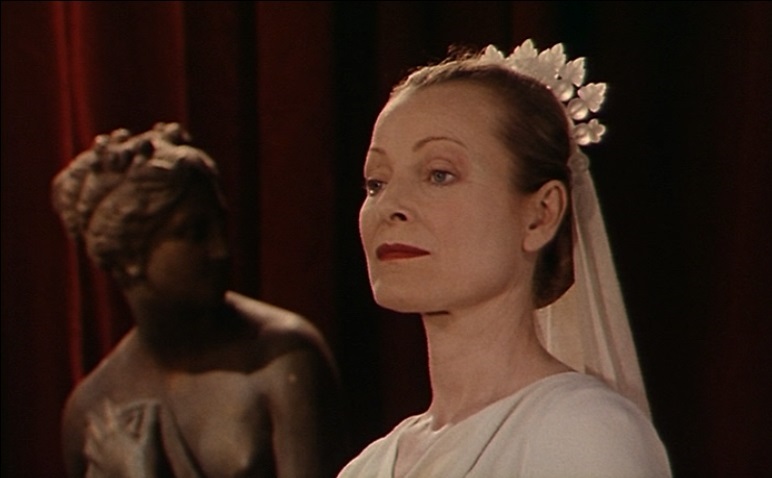 17 Cette représentation de la pièce que se réapproprie le cinéaste est donc un moment de transition dans le film. Elle guide la destinée de Félicie qui ensuite décide de miser sur d’éventuelles retrouvailles avec Charles et d’y croire. Après la grâce reçue dans l’église de Nevers, c’est la pièce de Shakespeare qui lui apporte une seconde révélation. Le lien avec la pièce est évident car l’abnégation de Léonte lui a en quelque sorte ramené sa femme disparue. Rohmer accentue d’ailleurs le clivage entre la soi-disant statue d’Hermione et de véritables statues présentes à l’arrière-plan. Un plan isole Hermione cadrée en plan rapproché poitrine qu’une statue semble regarder depuis l’arrière-plan.