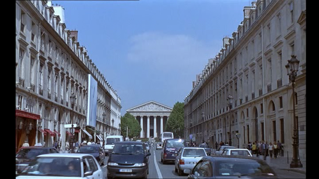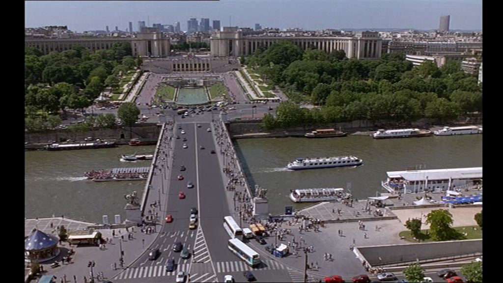 6 C’est donc dans un contexte saturé d’allusions que les vers shakespeariens apparaissent. Le générique de début est d’ailleurs un objet d’analyse intéressant. Sobre, il propose en écriture blanche sur fond noir les informations ad hoc : la musique que l’on entend est jouée à l’orgue de barbarie, sans paroles. Il appartient au spectateur de l’identifier. Cela lui donne en quelque sorte une connaissance supérieure, lui permet d’anticiper au mieux l’atmosphère du film. Identifier « Sous le ciel de Paris » n’est pas essentiel, bien sûr, mais la chanson illustre au plus près les vues d’un Paris de carte postale que le film s’amuse à dépeindre, qui peuvent d’ailleurs entrer dans la catégorie des citations visuelles et culturelles.