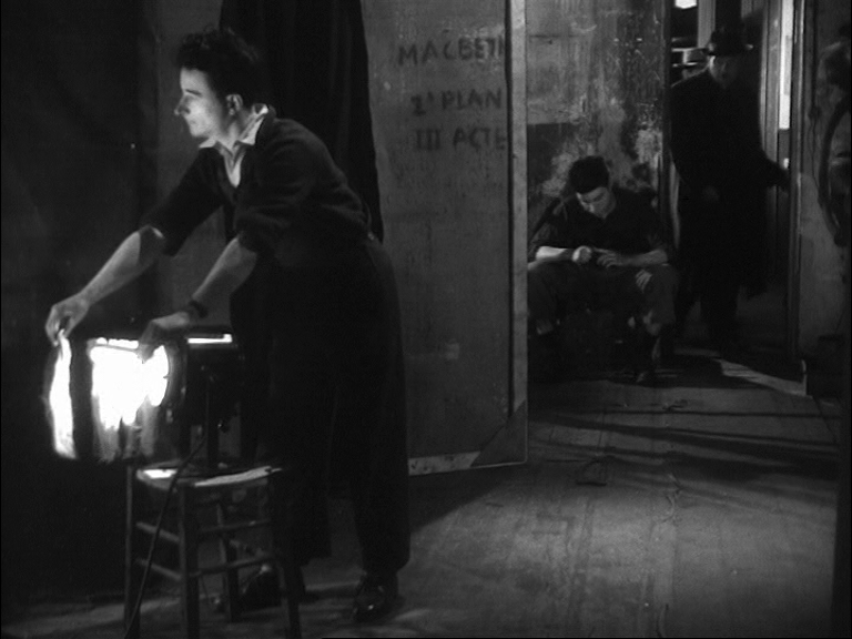 2 Let us first briefly go over the plot to make the reader familiar with the ins and outs of the film. Ludovic Harn (Pierre Brasseur) and Aurélia Nobli (Monelle Valentin) have been lovers for a great many years. Both act in the theatre company directed by Lucien Bertal (Michel Simon), Aurélia’s malignant and hate-cankered [5] common-law husband. Bertal has taken it into his head to come to grasps with a long-rooted desire to stage-direct Macbeth. One night, shortly before the performance gets started, three shots are fired, wreaking havoc throughout the playhouse. A few minutes later, the caretaker, on her way to bring up a cup of coffee, hurries up the stairs leading to Bertal’s dressing-room, with a number of actors hot on her heels, and comes upon Bertal’s lifeless body lying on the floor. Police cars soon come racing through the streets and screech to a halt in front of the theatre. The men hustle in and fan out through the playhouse, guarding every exit and very nearly moving the film à huis-clos, i.e. behind closed doors. The police officers readily become suspicious of Sigurd, an old actor who threatened to get back at Bertal earlier that evening, waving a gun right in a stagehand’s face, for having spitefully been turned down when entreating the director for even a minor part in the play. The old man is found falling down drunk in the pub round the corner. He straightaway confesses to his crime and is at once apprehended. The Assistant Inspector feels thrilled by the Shakespearean performance, which, never having set foot in a playhouse before, he considers straight away as another police investigation to be carried out, naively confusing fiction and “reality.” Meanwhile, the Chief Inspector carries on his own informal enquiries and soon feels his own curiosity aroused by the play, whose similarities with the film action are increasingly unsettling. The true culprits, Ludovic and Aurélia, are unmasked at last, and sent to jail. The very last words of the film are voiced by the Assistant Inspector ― presumably Barsacq and Anouilh’s mouthpiece ― who, as will be demonstrated, has never ceased occupying the threshold between backstage and the stage, and who has most contributed to its porousness: “For all that happened, boss, let’s admit it’s a good play they just performed ― Shakespeare, I’ll have to remember that name!” (time code 1.20.18). [6]