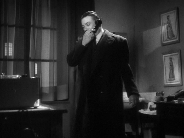 12 Comme je l’ai évoqué brièvement, le film s’ouvre sur un plan éloigné du théâtre qui se rapproche presque insensiblement par un lent travelling avant (le temps que défile en surimpression le générique), comme pour y pénétrer (photo n°4) et se clôt de même avec un jeu de caméra inverse, gros plan suivi d’un travelling arrière (photo n°5), alors que nous quittons la bâtisse au milieu des spectateurs internes (clip 00.00.24-00.01.35 & 1.20.00-1.20.42). Le film est donc entièrement enclavé entre un travelling avant et un travelling arrière sur le théâtre ; la caméra accompagne ainsi de ses pas le spectateur dès les toutes premières images dans le monde des planches jusqu’à sa sortie en fin de pellicule. Sorte d’épanalepse filmique, ces deux plans mettent en valeur l’élément théâtral enclavé dans le film, où se déroule l’essentiel de l’action dès lors que la police arrive et cerne les lieux, gardant chacune des issues et assignant les protagonistes « à résidence ». Seules quelques incursions des officiers à l’extérieur (au bistrot du coin ou au « dépôt » où est consigné Sigurd) viennent briser ce huis-clos. Par ailleurs, si le spectateur se rend oisivement, seul, sur le lieu de la représentation, la caméra adoptant son point de vue et « s’avançant à petits pas », les deux officiers de police se trouvent mêlés au flot des spectateurs à la sortie du théâtre, comme s’ils avaient eux-mêmes passé la soirée à se divertir devant une représentation théâtrale... tout comme le supérieur hiérarchique de l’inspecteur dit au téléphone aller passer la soirée au Casino de Paris (code temporel 37.08). Les paroles admiratives de l’inspecteur-adjoint, qui clôturent le film, sont un commentaire sur la pièce elle-même, comme on aurait pu l’entendre de la bouche de n’importe quel spectateur : « Eh, tout de même, patron, avouez que c’est une belle pièce qu’ils ont jouée là... Shakespeare... Il faudra que je me rappelle ce nom-là ».