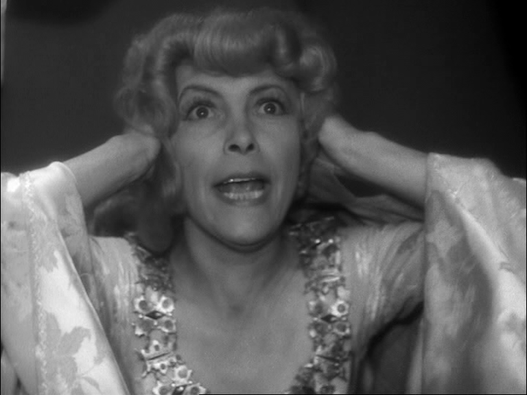 5 Après le départ du couple, un vieil acteur, Sigurd (Noël Roquevert) fait irruption et s’en prend verbalement à Bertal qui lui avait promis un rôle. Ce dernier le déboute sans ménagement et quitte les lieux dans un claquement de porte. Sigurd, hors de lui, sort un revolver de sa poche et le brandit devant un machiniste qui vient d’assister à l’altercation en disant qu’il le « crèvera ». Ce même soir, peu avant le début de la représentation, Bertal est assassiné alors qu’il était seul dans sa loge en train d’enregistrer un commentaire sur la pièce pour des journalistes. La police investit le théâtre. Les soupçons portent tout d’abord sur Sigurd, qui est arrêté, avant que ne soient démasqués les vrais coupables, Ludovic et Aurélia, qui finiront leurs jours en prison.